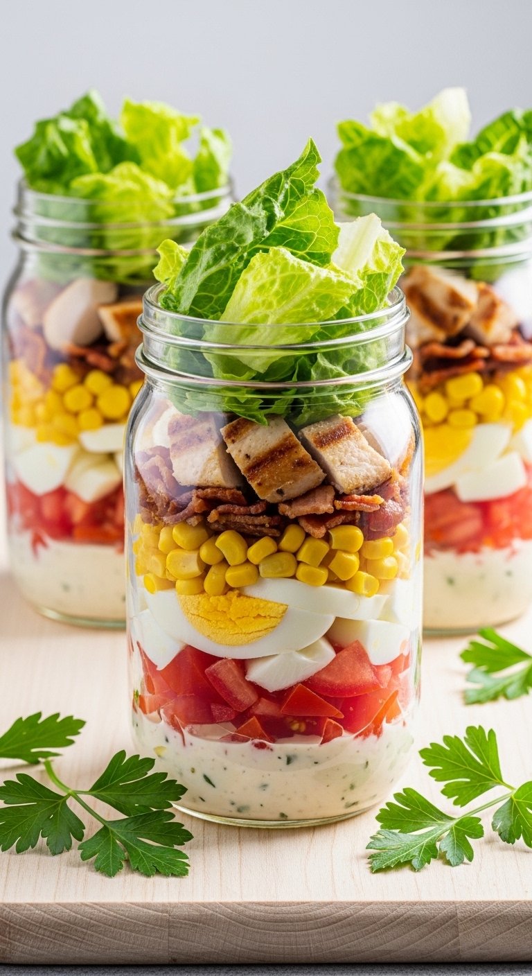 2. Easy Chicken Cobb Mason Jar Salad — Meal Prep Salad Recipes