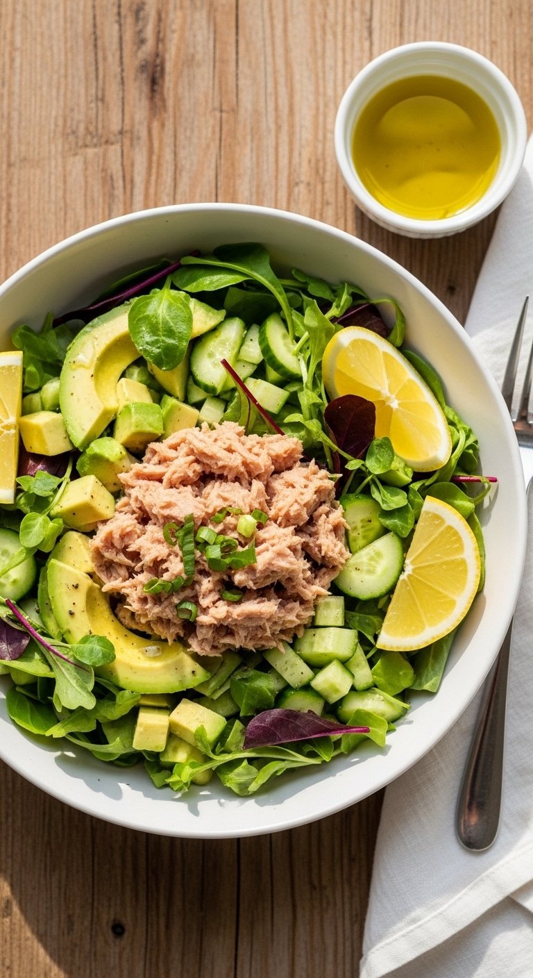 This no-cook Tuna Avocado Salad Recipe is a quick, filling lunch that comes together in 10 minutes. Canned tuna gives you protein, avocado adds creaminess, and a hit of lemon wakes everything up. It’s perfect when you want a satisfying meal without turning on the stove.