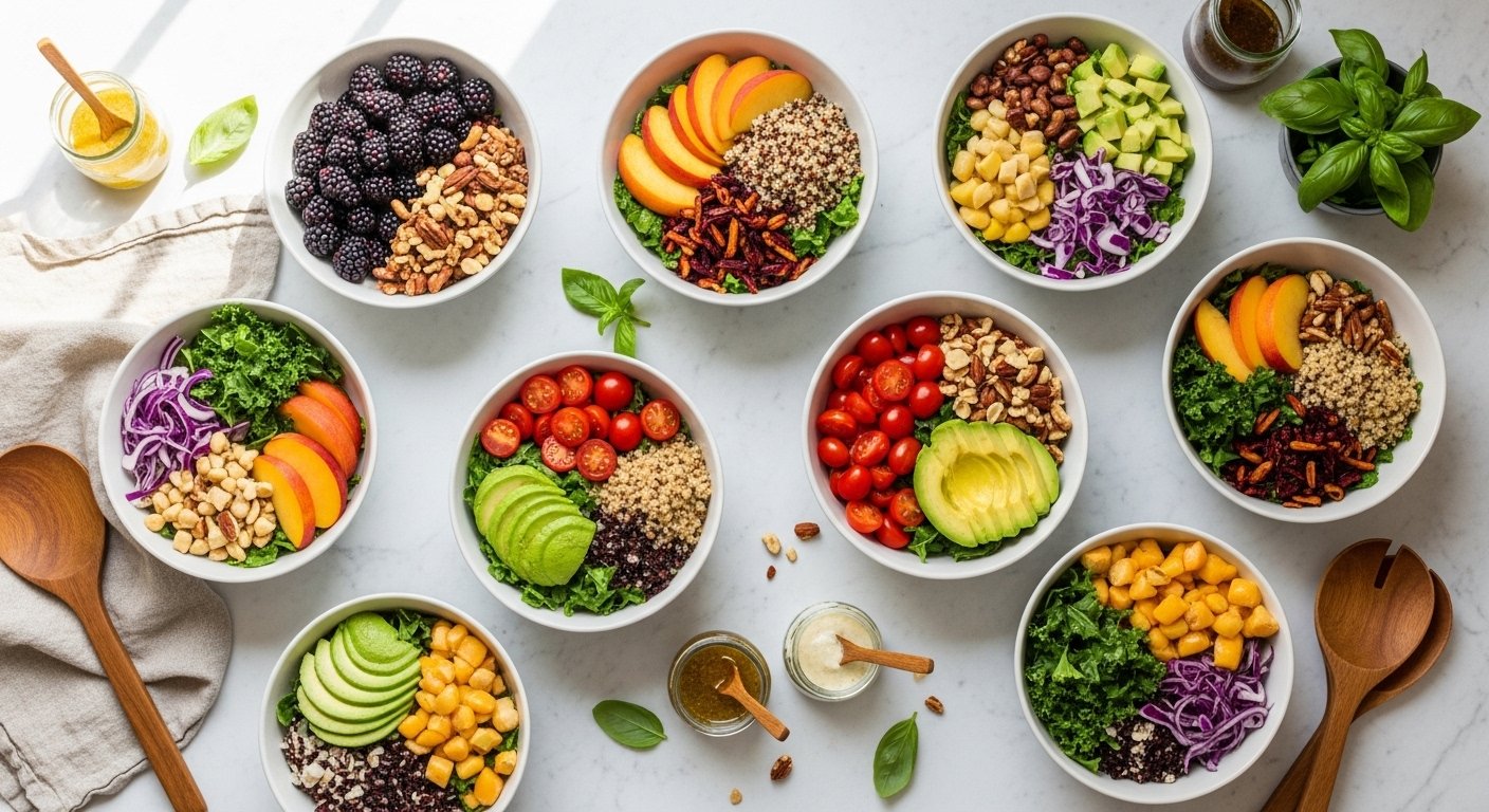 Salad Recipes don’t have to be the same tired bowl of limp lettuce. Think bright fruit, toasted nuts, crunchy noodles, warm roasted bites, and bold dressings that make you actually look forward to lunch. I picked nine recipes that solve the two worst salad problems: bland flavor and lack of staying power. You’ll find a mix of no-cook lunches, jar-friendly meal prep, seafood-forward plates, and a few roasted elements for those cozy evenings.