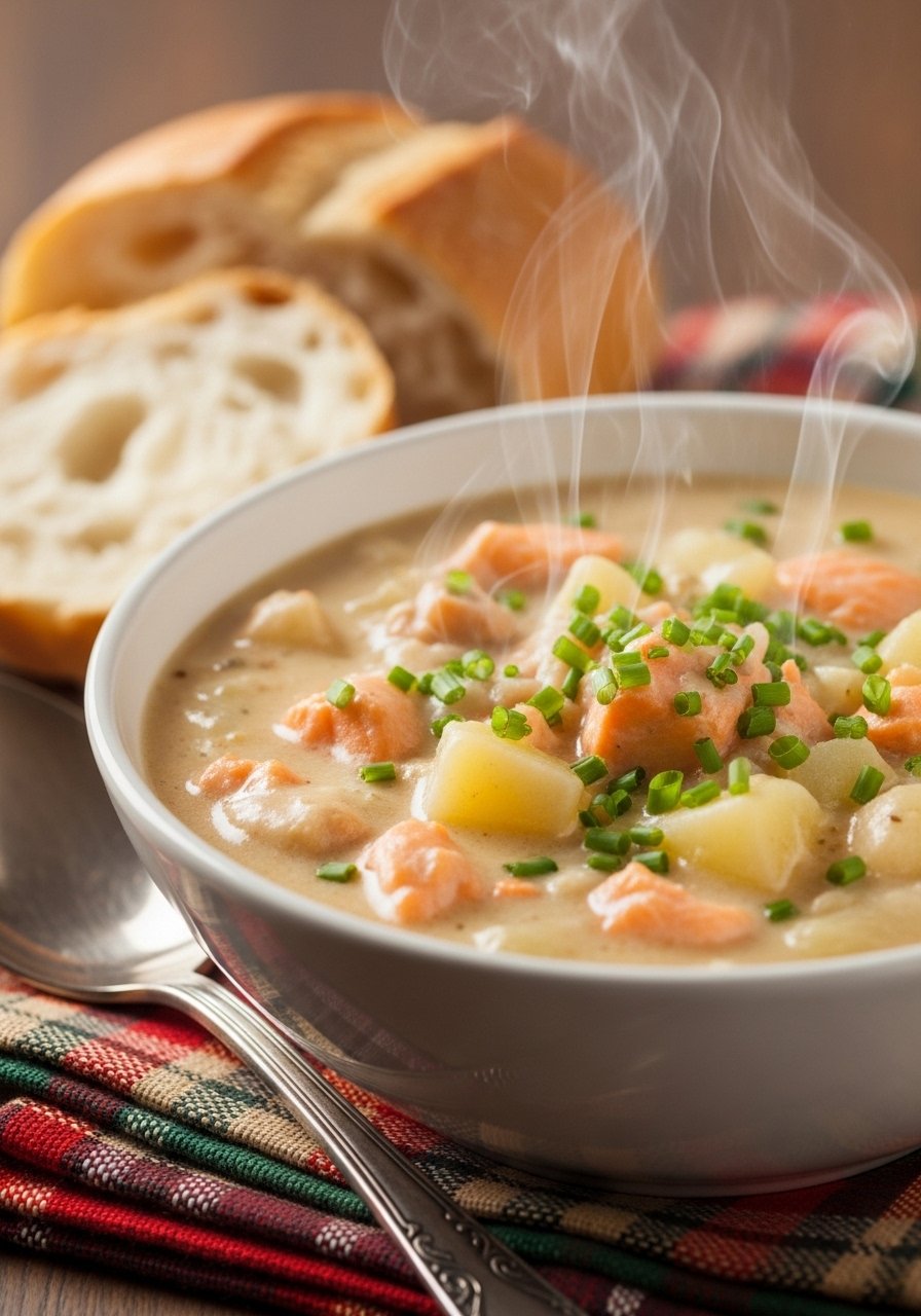 12. Salmon and Potato Chowder (Hearty Salmon Recipes for Cooler Nights)