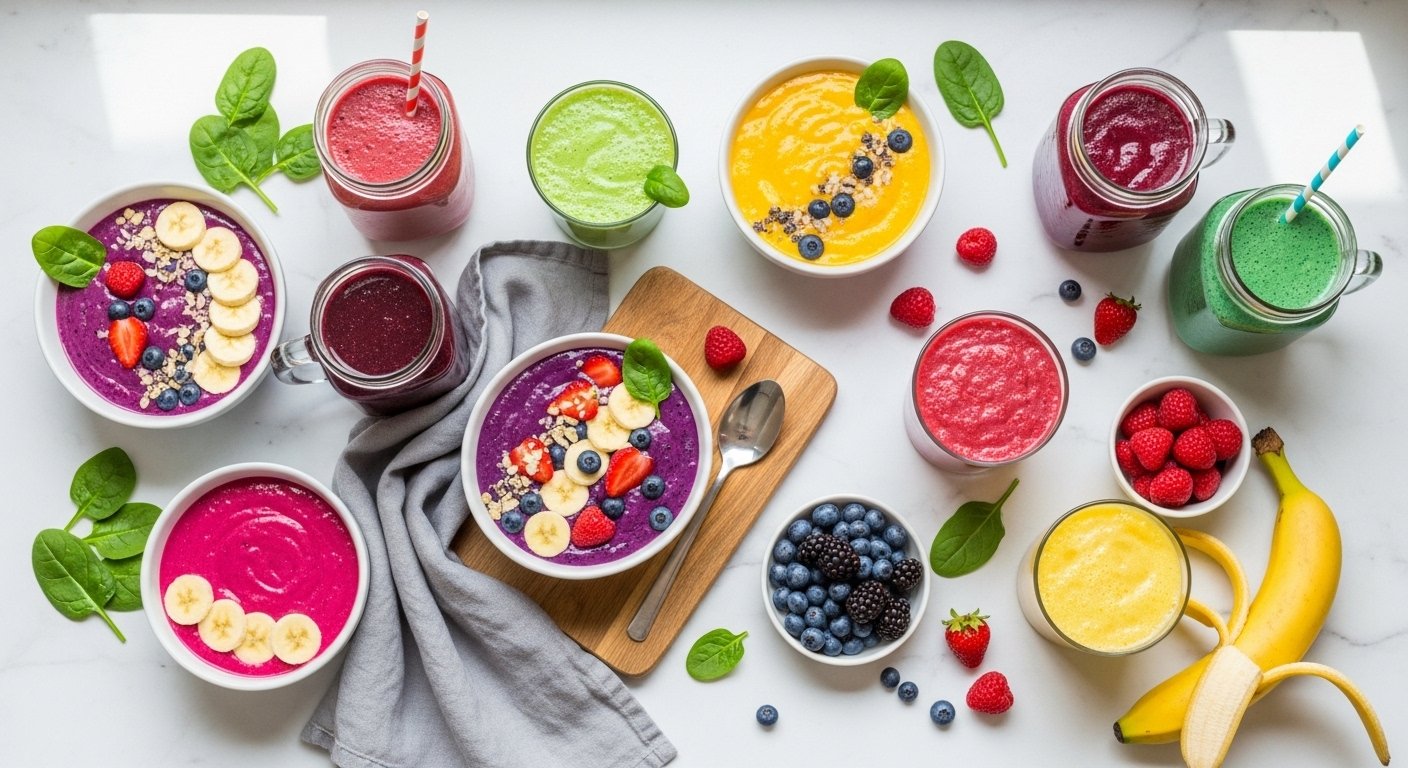 Mornings can be a blur — but a vibrant blender cup can change everything. If you grab breakfast on the go, these Smoothie Recipes are built for speed, flavor, and staying power. You’ll find fruity pick-me-ups, green protein blends, creamy nut-butter smoothies, and smoothie recipes that fit vegan, keto, and gluten-free preferences.