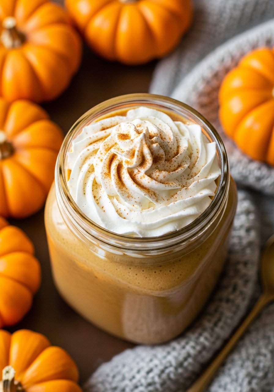 Top with a dollop of whipped coconut cream and a sprinkle of spice. Serve with warm toast or a spiced granola bar. Store in glass jars for up to 24 hours and re-stir before sipping. A small spice jar set keeps pumpkin pie spice handy.