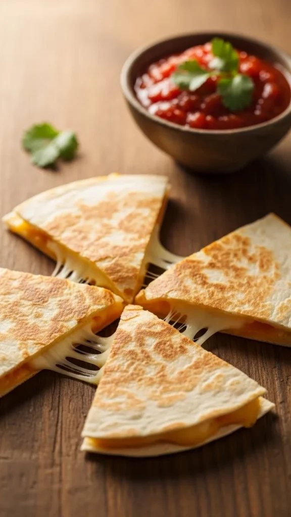 Cut into shamrock shapes using a cookie cutter. Serve with salsa, sour cream, or guacamole. Great for kids or casual snacking.