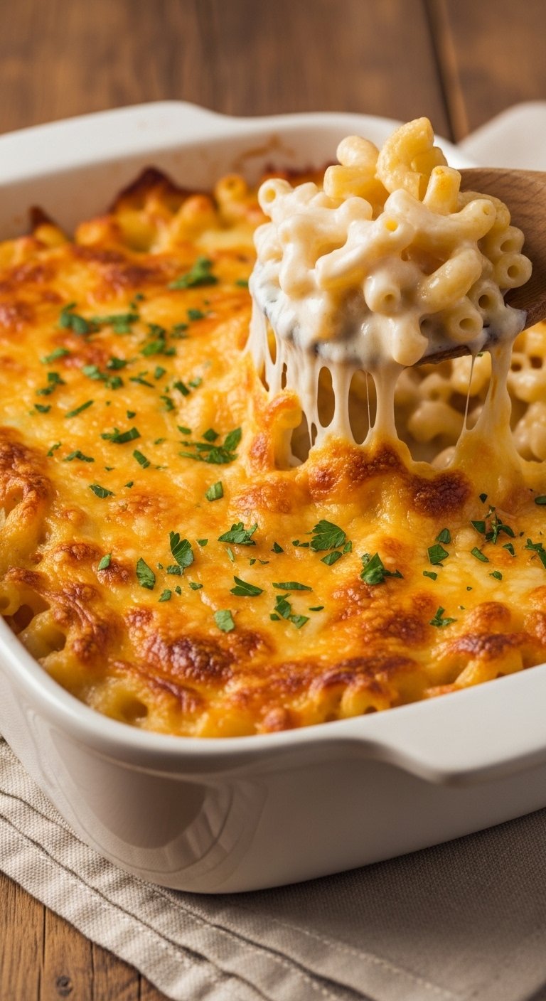 Serve this on a warm platter so the sauce stays creamy. Add an extra sprinkle of parsley or crispy bacon crumbles for texture. Save leftovers in airtight containers for up to 4 days; reheat gently in a 325°F oven with a splash of milk. This pairs beautifully with roasted turkey and bright cranberry sauce.