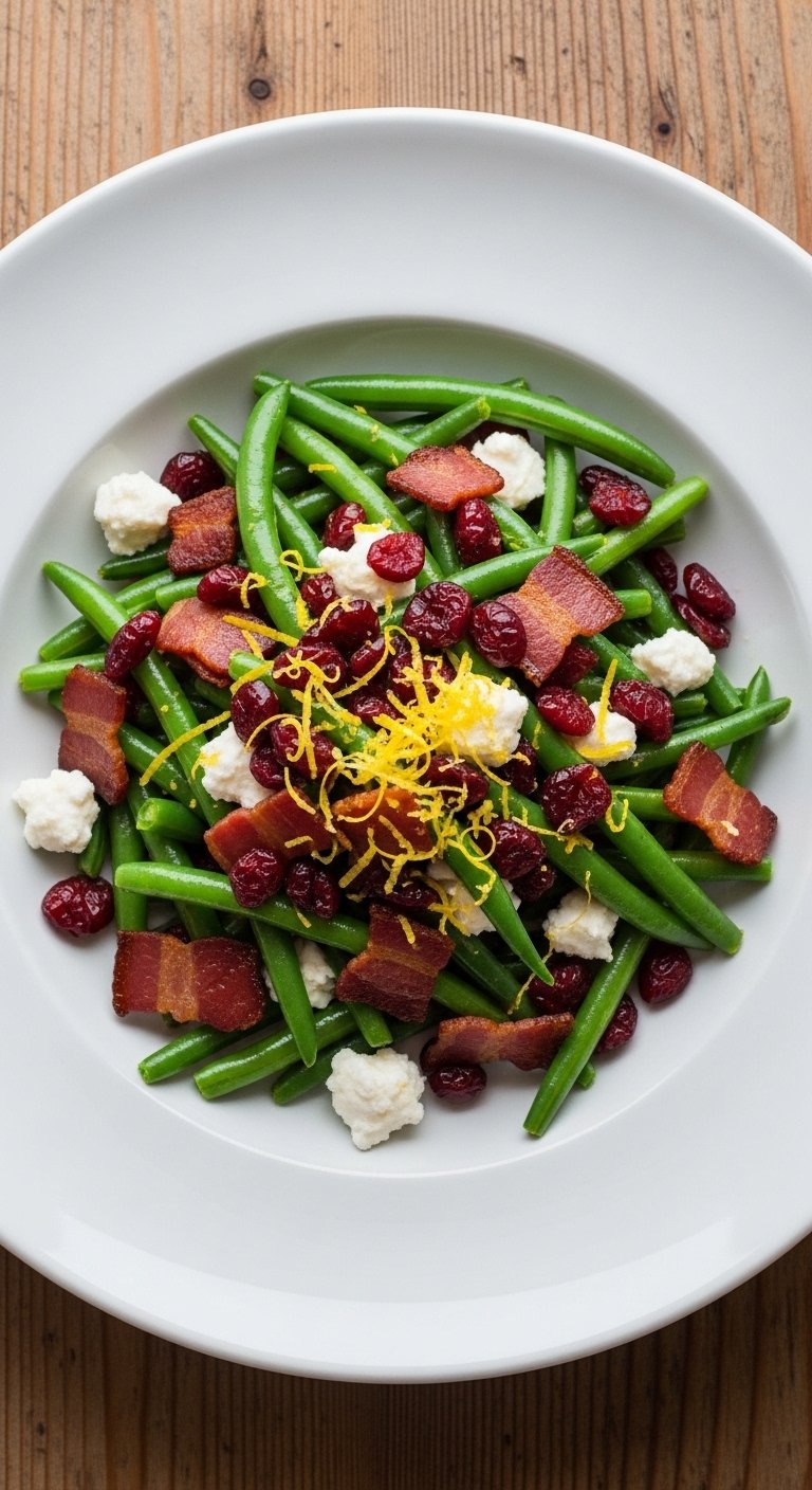 If your green beans normally disappear into the "bland" category, this version flips them into a star side. Bacon brings crunch, cranberries add a bright sweet-tangy pop, and goat cheese creates a silky contrast. It’s an easy way to make green beans a conversation piece.