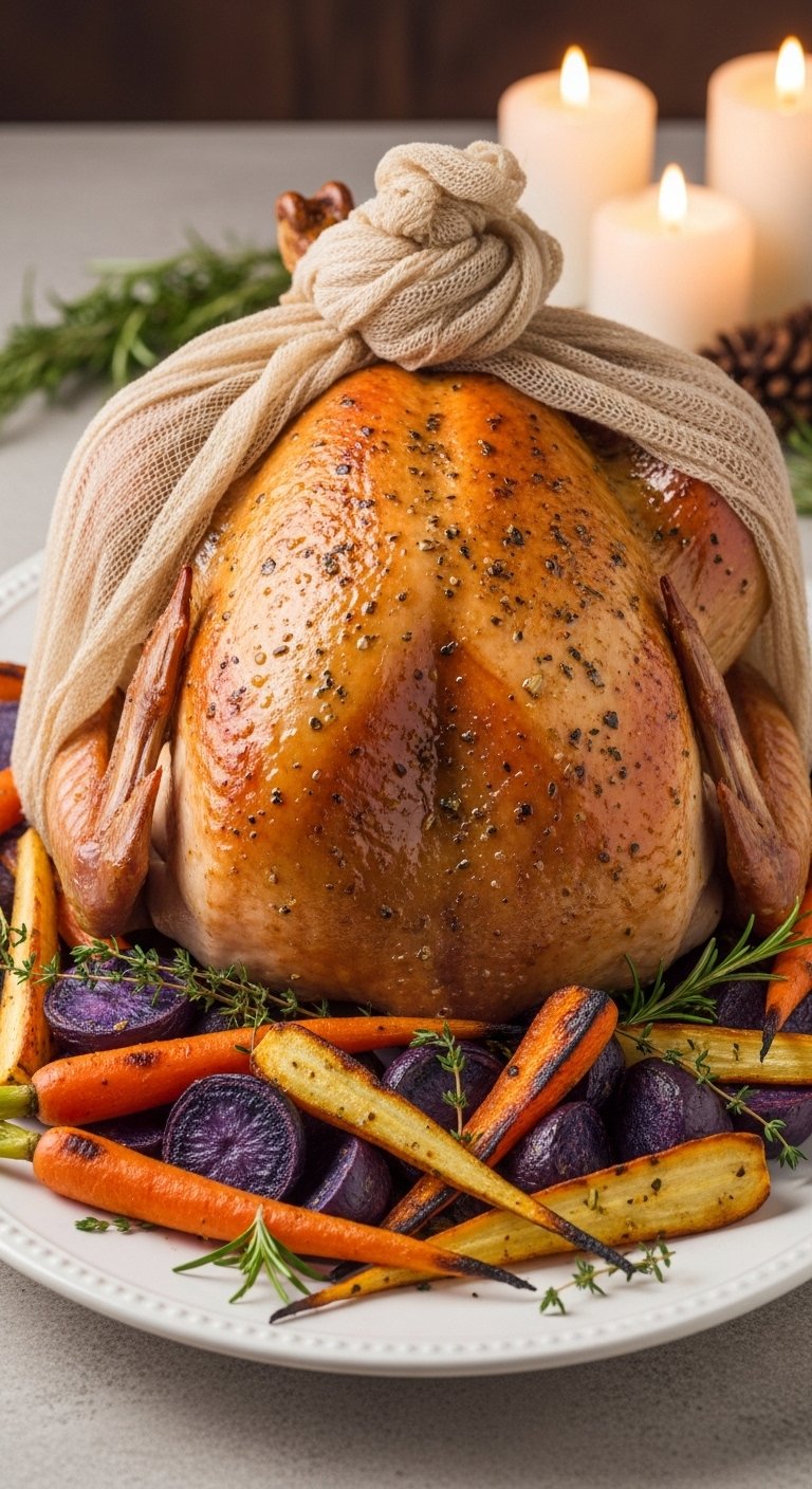 If you want classic turkey that’s both aromatic and perfectly moist, the herb butter and cheesecloth technique is a reliable Thanksgiving recipe. The butter under the skin flavors meat deeply, while cheesecloth helps retain moisture and encourages even browning.